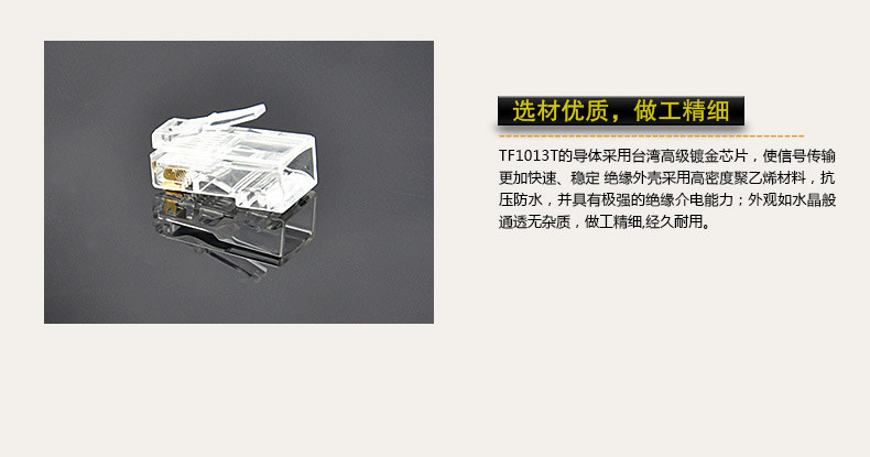 在选购水晶头的时候,必须搞清楚自己使用的超五类网线还是六类网线。