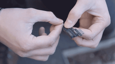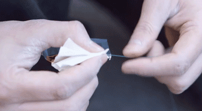 如果空气被堵塞,工程师将一小块海绵吹送进管道进行清理。然后将皮线光缆吹放入黑色导管。