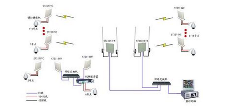 无线视频监控:采用最成熟的802.11B无线技术,解决不好附设线缆的困难。