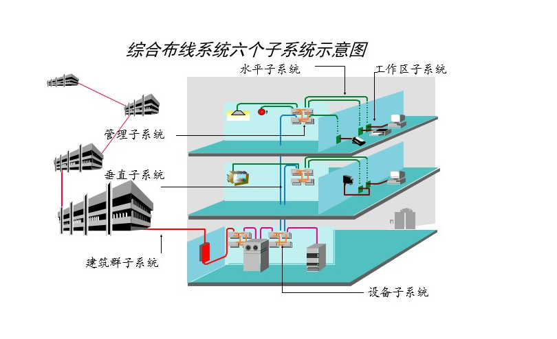 管理子系统三种应用:水平/干线连接;主干线系统互相连接;楼层设备的连接。线路的色标标记管理可在管理子系统中实现。