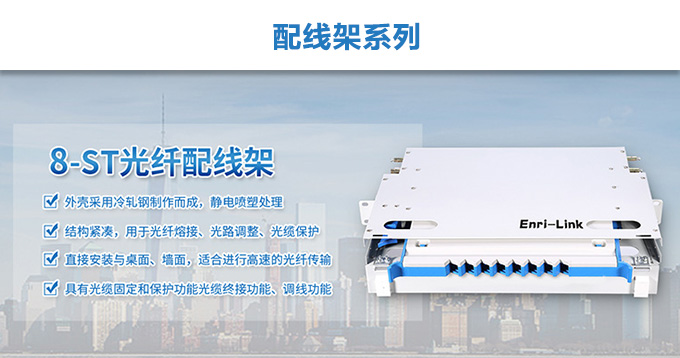 采用镀锌处理冷轧钢板和表面喷涂的工艺,光纤分配盘采用掺杂阻烯材料的喷缩材质,轻便灵活,又结实耐用,具有光缆引入,固定和保护功能,光缆终端与尾纤熔接功能,用户可根据实际需求选配单元数量或法兰盘数量.